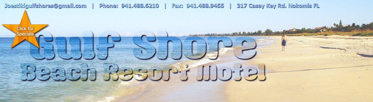 Gulf Shores is a tropical casey key motel. Choose from beachfront or bayside apartments that lead to the secluded Nokomis Beach or the Sarasota Intracoastal Waterway. Fish from the new private docks on the waterway, or dock your boat in a slip along our waterfront. Experience the wildlife as you stroll the beach right outside your door.